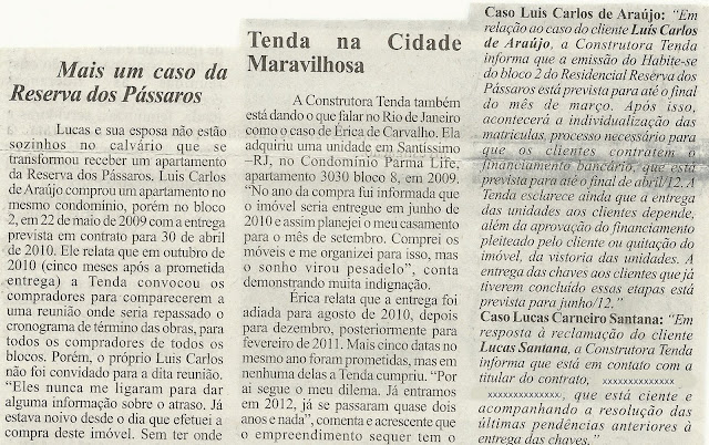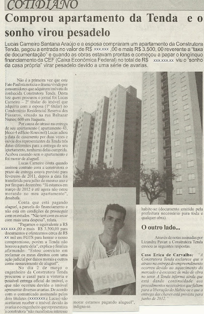 CAROS AMIGOS, ESTAMOS JUNTOS NA LUTA PELA ENTREGA DO NOSSO IMÓVEL, QUERO MOSTRAR A VOCÊS MINHA RECLAMAÇAO E A DO LUCKAS (RESIDENCIAL RESERVA DOS PÁSSAROS - SP), QUE SAIU NO JORNAL O FATO PAULISTA: