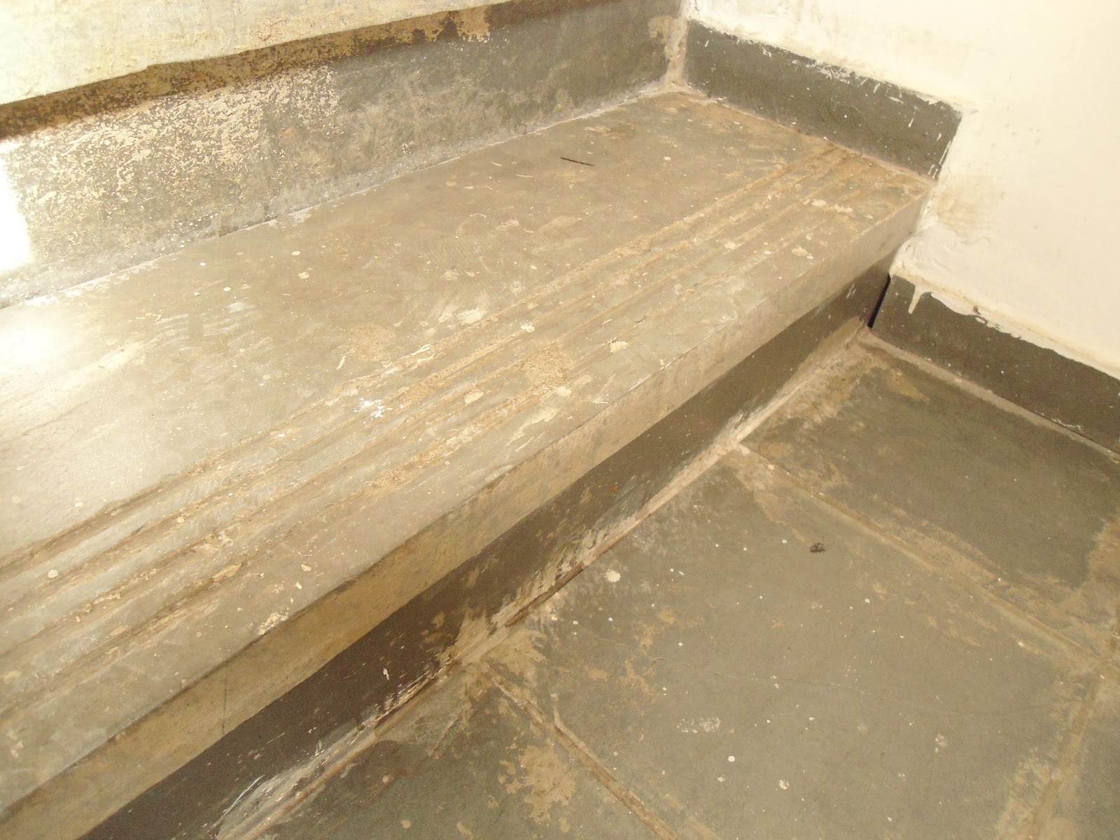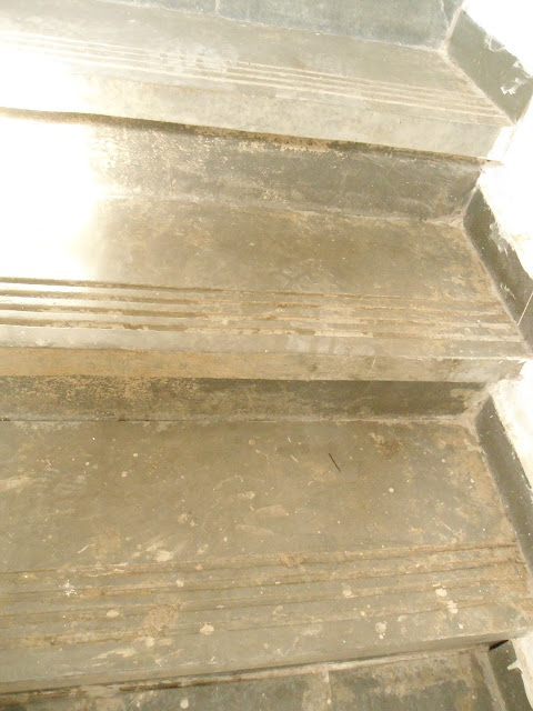 As escadas, completamente sujas de cimentos, e ainda passaram resina por cima da sujeira!!!