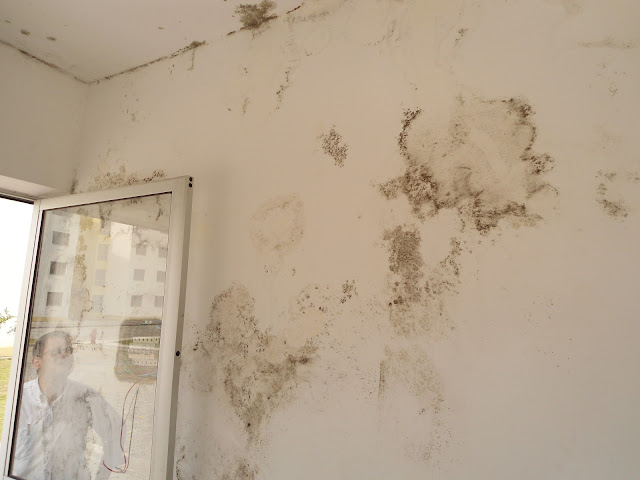 A parede dos blocos esta super suja (área externa), principalmente os últimos blocos, ou seja, os blocos dos fundos,, acho que eles pensaram assim: Como é no final ninguém vai se queixar.